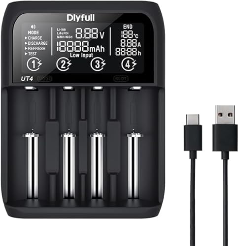 Dlyfull 18650 Caricabatterie, Caricabatterie universale Pile Ricaricabili per litio Li-ion NI-MH NI-Cd LiFePo4 18650 21700 AA AAA C D - Con Batteria Ricaricabile Scarica, refresh, funzione di test