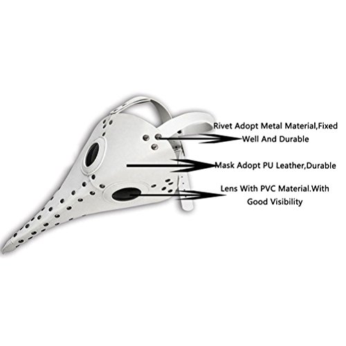 DM201605 - Maschera da medico della peste, con becco lungo da uccello, stile steampunk, in ecopelle, per Halloween, colore: nero, PU, Bianco Stile 1, Standard