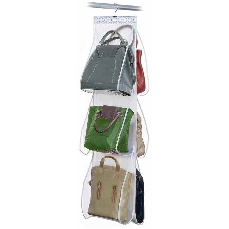 Un organizer portaborse salvaspazio con 6 scomparti trasparenti, perfetto per riporre ordinatamente le tue borse e pochette all'interno dell'armadio In breve Ottimo organizer portaborse Ospita fino a 6 borse e/o pochette Le protegge da polvere, tarme e umidità Da appendere all'interno del tuo armadio Dim. 36 x 120 cm Descrizione Un organizer portaborse salvaspazio con 6 scomparti trasparenti, perfetto per riporre ordinatamente le tue borse e pochette all'interno dell'armadio, ed averle a portata di mano. Da appendere all'asta, è realizzato in PEVA e PE, materiale resistente che proteggerà le tue borse da polvere, tarme e umidità. Dim. 36 x 120 cm.