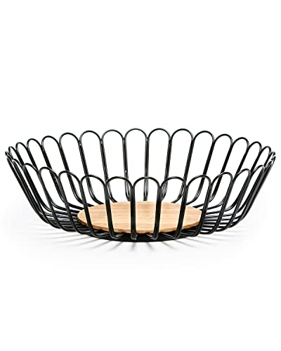 DMAR Grande Portafrutta, 30x9cm Cesto per Frutta con Base in Legno, Nero Fruttiere, Metallo Porta Frutta da Tavolo, Moderno