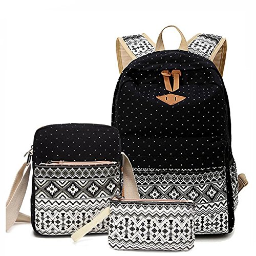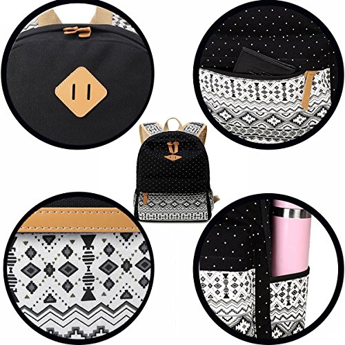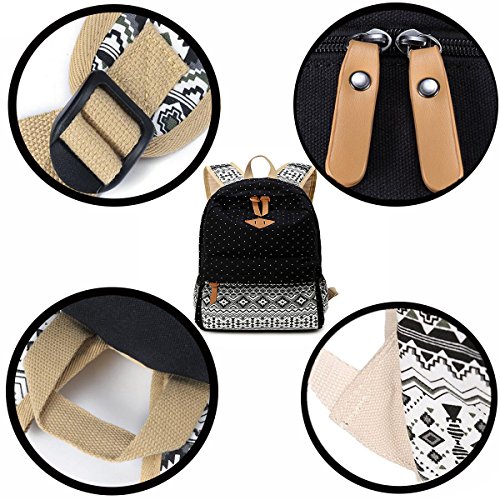 DMbaby DS13 Impermeabile Zainetto Zaino Ragazza Donna Zaino Scuola Media Zaino Scuola Primaria Zaino Scuola Elementare Zaino Vintage Zaino Casual Trekking Viaggio Nero