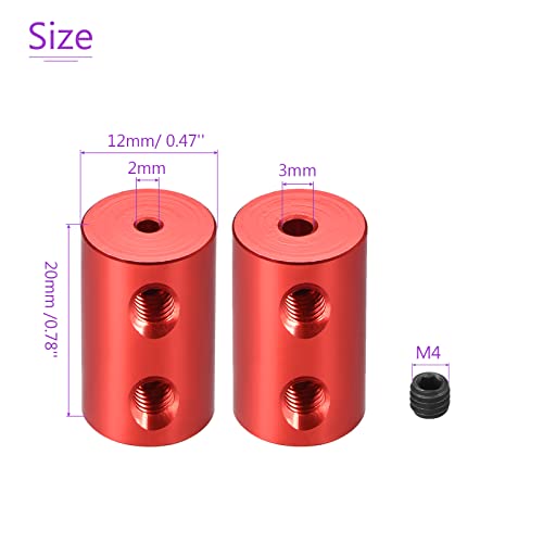 DMiotech 2-3mm Foro L20XD12 Rigido Giunto Albero Giunto Giunto Connettore con Viti Alluminio Lega Motore Albero Connettore per Stampante 3D Rosso