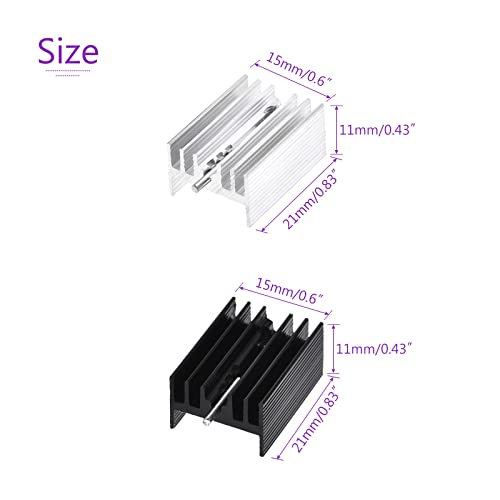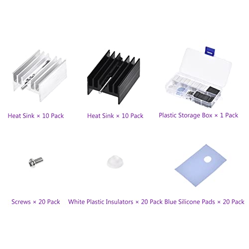 DMiotech 1 Set 21x15x11mm Alluminio Raffreddamento TO-220 Transistor Diodi con Blu Silicone Pad, Viti, e isolatori plastica bianco