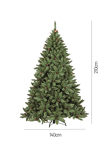 ALBERO DI NATALE STOCCOLMA -Albero di Natale extrafolto con pigne decorative, albero di qualità superiore realizzato in durevole PE + PVC con 1132 rami, Altezza cm 210