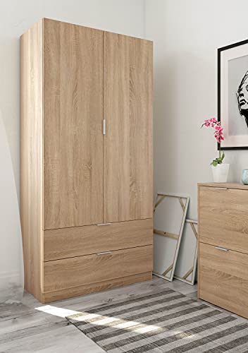Dmora Armadio Ante e Due cassetti, Colore Rovere, cm 81.5 x 180 x 52