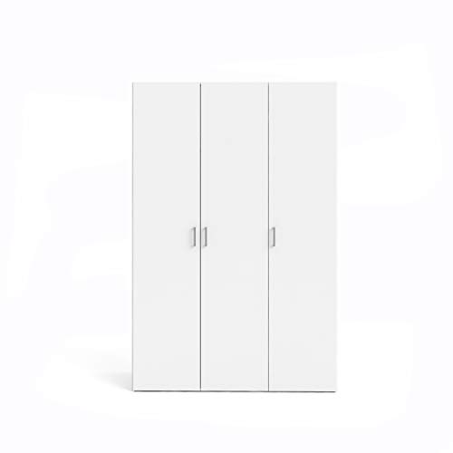 Dmora Armadio Guardaroba a Tre battenti con Quattro Ripiani Interni e Barra Appendiabiti, Colore Bianco, cm 115 x 175 x 49, 3 Ante