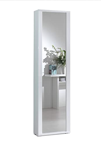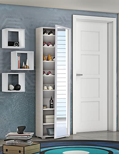 Dmora Armadio multiuso a 1 anta a specchio e 7 ripiani regolabili, 100% Made in Italy, Mobile portascarpe da ingresso, Scarpiera moderna, cm 50x32hx182, colore Bianco