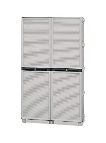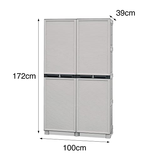 Dmora Armadio Multiuso da Esterno o Interno, Mobile a 2 Ante e 3 Ripiani in Polipropilene, 100% Made in Italy, cm 100x39h172, Colore Grigio Chiaro