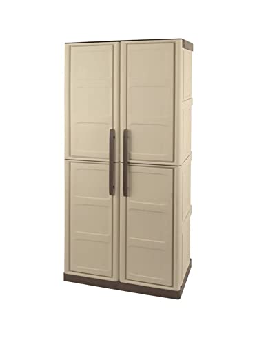 Dmora Armadio multiuso da esterno o interno, Mobile a 2 ante e 3 ripiani in polipropilene, 100% Made in Italy, cm 70x39h165, colore Beige
