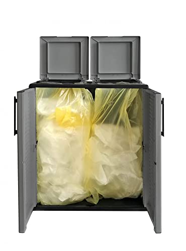 STRUTTURA E UTILIZZO - Struttura salvaspazio perfetta per contenere sacchi e separare e i rifiuti in modo ordinato, soluzione comoda e durevole per la raccolta differenziata - Coperchi dotati di chiusura di sicurezza he garantiscono protezione dal vento e da aperture accidentali - L'anello portasacco è particolarmente robusto al fine di evitare rotture - Dotato di un ripiano regolabile sulla base - Pratico per sfruttare al meglio lo spazio, può essere posizionato anche all'esterno in giardino, balcone, terrazzo, cantina e garage