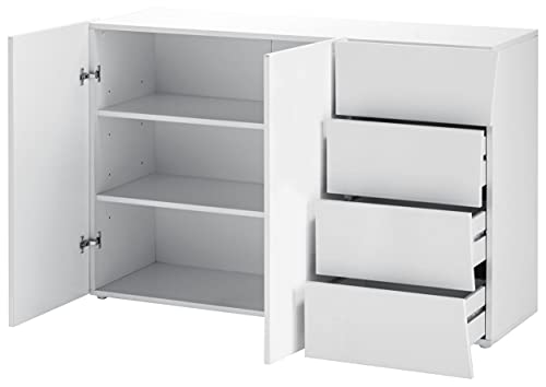 Dmora Bianco Credenza Moderna, Madia di Design a 2 Ante e 4 cassetti, Made in Italy, Mobile Porta TV, Buffet da Soggiorno, cm 124x40h82, Colore Lucido