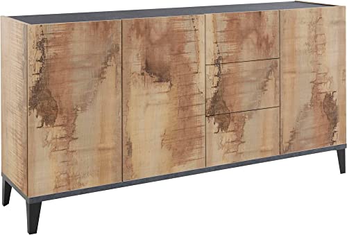 CREDENZA MODERNA: Credenza di design utilizzabile come mobile da soggiorno o buffet, credenza moderna con tre ante e tre cassetti - Interamente di colore ardesia e acero