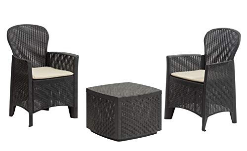 Dmora Set da Giardino con cuscini, 2 Poltrone e 1 Tavolino contenitore da esterno, MADE IN ITALY, Antracite