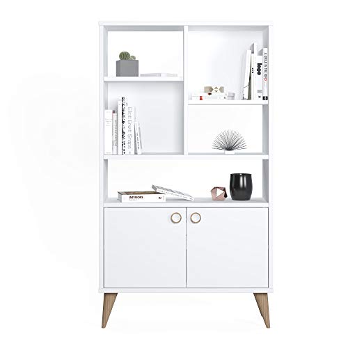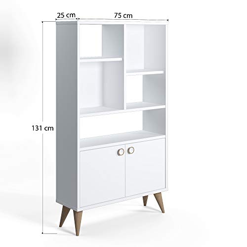 Dmora Libreria con Due Ante battenti e Cinque Scomparti Aperti, cm 75 x 25 x 131, Colore Bianco