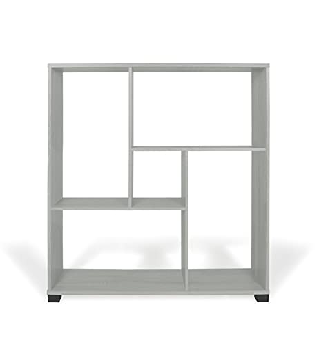 Dmora Libreria A Cinque Vani Aperti Con Effetto Geometrico, Made In Italy, Cm 80 X 24 X H83, Colore Rovere Sbiancato