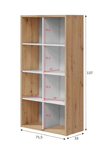STRUTTURA E UTILIZZO - Mobile porta libri multiuso multi posizione sviluppato in verticale con otto scomparti aperti - Grazie alla sua struttura dotata di ripiani fissi non regolabili in altezza e mensole, è possibile posizionare sugli scaffali libri, documenti o oggetti decorativi a seconda delle esigenze - Biblioteca con possibilità di montaggio verticale o orizzontale - Questa biblioteca salvaspazio è moderna e perfetta da posizionare in ambienti con esigenze di spazio - Articolo d'arredamento perfetto per arredare salotto, camera, stanza dei bambini, ufficio o studio casalingo