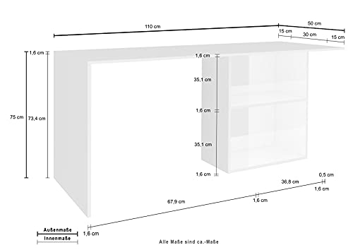Dmora Scrivania lineare per Ufficio e Studio con scaffale, Made in Italy, Tavolo Minimal, Scrittoio Porta PC, cm 110x50h75, Colore Bianco Lucido