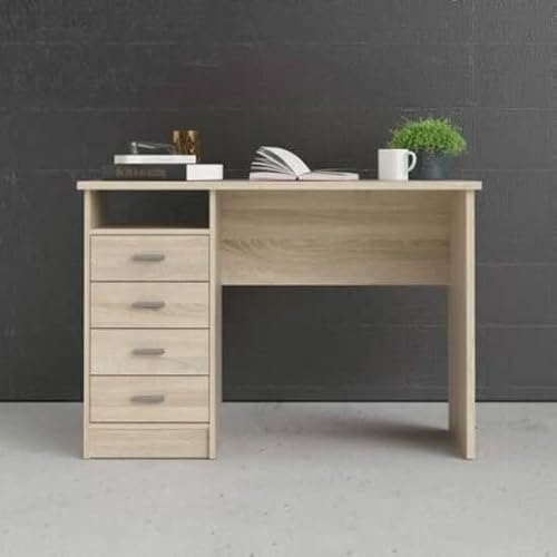 Dmora Scrivania con quattro cassetti, colore rovere, cm 110 x 76 x 48