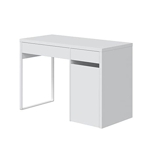 Dmora Scrivania reversibile modernaper ufficio e studio con 2cassetti e anta, Tavolo da computer, Scrittoio porta PC, cm 109x50h74, colore Bianco