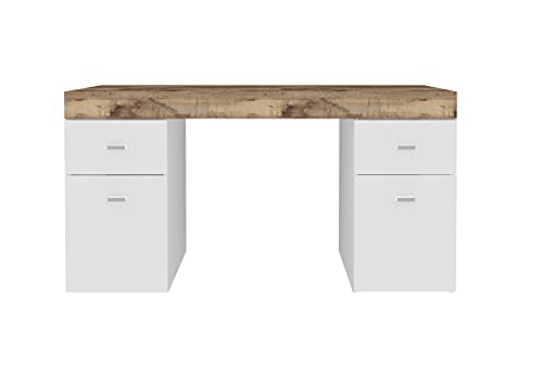 Dmora Scrivania per Ufficio e Studio con cassettiera e Piano Contenitore, Made in Italy, Tavolo Minimal, Scrittoio Porta PC, cm 130x60h75, Colore Pero, Bianco Lucido e Acero, Big