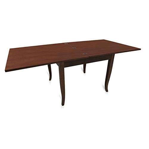DMORA Tavolo con Apertura a Libro, in Legno massello Color Noce, cm 100x100x79.50, UNICA