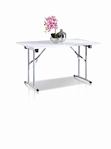 TAVOLO PIEGHEVOLE ARNICA -Tavolo da campeggio con gambe pieghevoli in metallo, Tavolo da pranzo moderno multiuso, 100% Made in Italy, Cm 125x75h80, Bianco