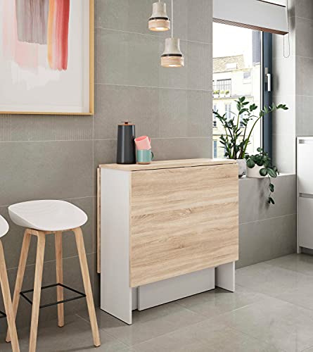 Dmora Tavolo da Pranzo Pieghevole con Piano, Tavolino ausiliario per Cucina, Richiudibile, Misure in cm: 78h x 77 x 31 (apribile Fino a 140), Colore Bianco e Rovere, 78x77x31