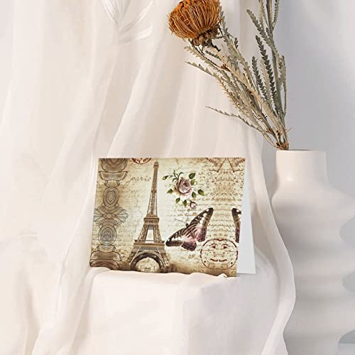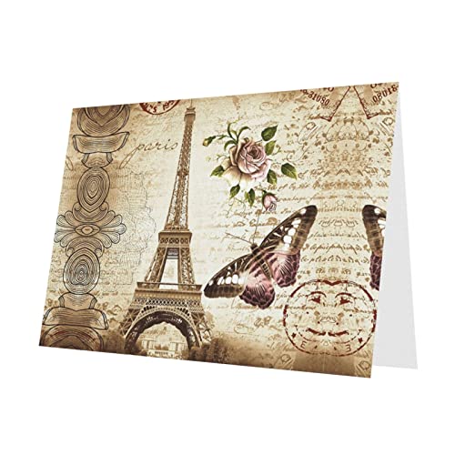 DMORJ Biglietto di auguri in carta perlata di alta qualità con farfalla con torre Eiffel di Parigi, per biglietto di compleanno, biglietto di San Valentino, di qualità