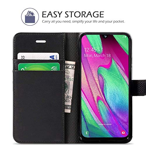[Pelle PU di alta qualità]: Galaxy A40 Flip Case in pelle PU di alta qualità. 100% fatto a mano.