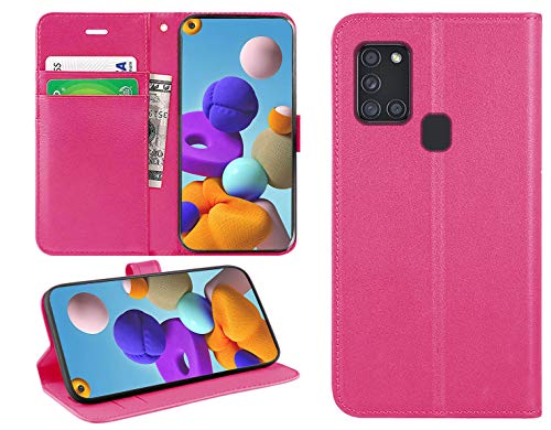 DN-Technology - Custodia a libro per Samsung A21S, in pelle PU, con chiusura magnetica, per carte di credito e contanti, colore: rosa