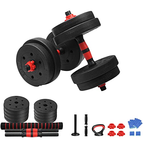DnKelar 5 in 1 set di manubri-Set di 2 15/20/30kg Set di manubri regolabili, manubri con pesi e asta di estensione, manubri, manubri lunghi set di plastica, kettlebell, sollevamento pesi per casa(15)