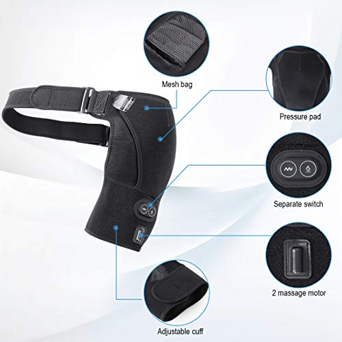 DOACT Cuscinetto Riscaldante per Spalla e Massaggiatore Elettrico 2 in 1, Supporto Bretelle per Donne Uomo Articolazione AC Dislocata, Terapia Calda Avvolgimento Dolore Spalla, Rigidità, Tendinite S
