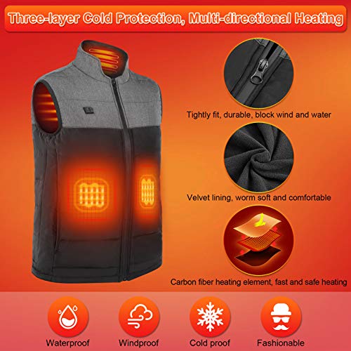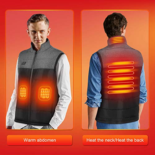 TESSUTO TECNICO MORBIDO E CALDO IMMEDIATO: Il gilet riscaldato è realizzato in pile ultra morbido e collo alto. L'elemento riscaldante utilizza la più recente tecnologia in fibra di carbonio, che può essere riscaldato rapidamente in 10 secondi. Con la chiusura lampo, il panno spesso e morbido può bloccare il vento freddo e immagazzinare il calore, mantenere efficacemente la temperatura corporea e promuovere la circolazione sanguigna