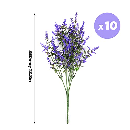 [Contenuto della confezione]: contiene 10 mazzi di fiori di lavanda artificiale viola con una lunghezza di circa 35 cm, è un ottimo sostituto dei fiori veri, rimanendo sempre verde e fresco.