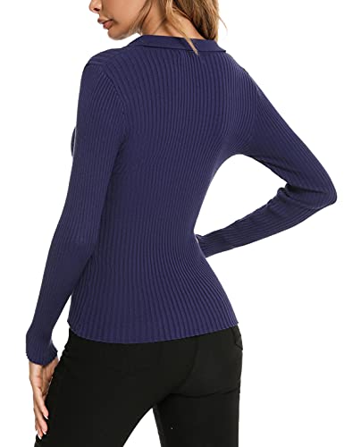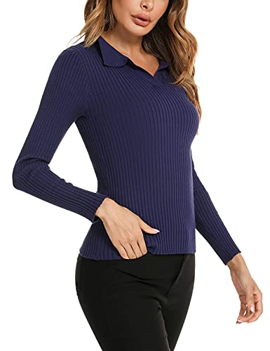 【Design speciale】: maglione polo con scollo a V, pullover in filato, maniche lunghe, design elegante e tessuto morbido, il maglione aderente può mostrare bene la tua curva.