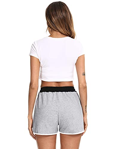 Doaraha Pantaloncini Sportivi Donna, Pantaloncini Donna Cotone Pantaloncini Sportivi Classici a Righe Comodi Pantaloncini Pigiama Adatti per Yoga Jogging Fitness Tempo Libero e Sonno A-Grigio L
