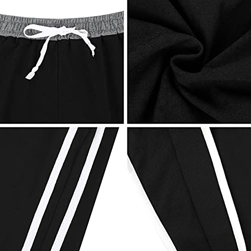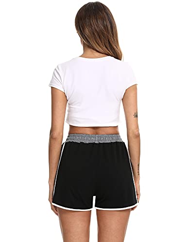 Doaraha Pantaloncini Sportivi Donna, Pantaloncini Donna Cotone Pantaloncini Sportivi Classici a Righe Comodi Pantaloncini Pigiama Adatti per Yoga Jogging Fitness Tempo Libero e Sonno A-Nero XXL