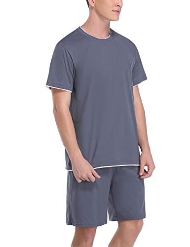 Doaraha Pigiama Corto da Uomo 100% Cotone Girocollo Tinta Unita Indumenti da Notte Estivi Colore Contrasto (F-Grigio Scuro, M)
