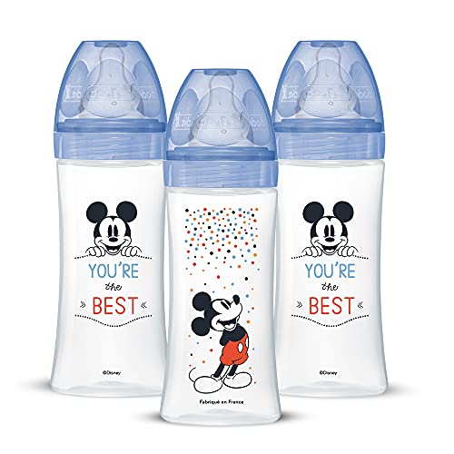 Dobie, Confezione da 3 Biberon Anticolica Initiation+, Topolino, 330 ml, dai 6 mesi, Tettarella Rotonda, Flusso Medio grande