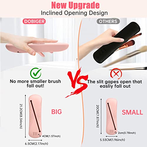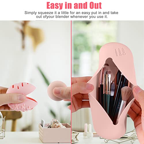 DOBIGER Stoccaggio Pennelli Trucco Set in Silicone, Supporto per Pennelli da Trucco in Silicone + Supporto per Spugnette da Trucco, Custodia Porta Pennelli da Trucco Rosa