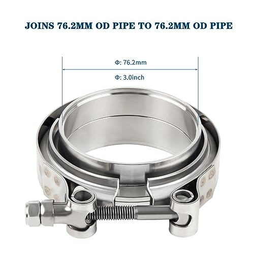 DOCAS 3,0 pollici 76.2mm Morsetto V-Band, Kit Flangia Morsetto V-band in Acciaio Inossidabile per Tubi di Scarico Turbo