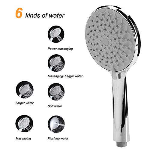 ⭐ Spruzzatore doccia manuale a 6 funzioni di grandi dimensioni, commutazione multifunzione, facile da usare.