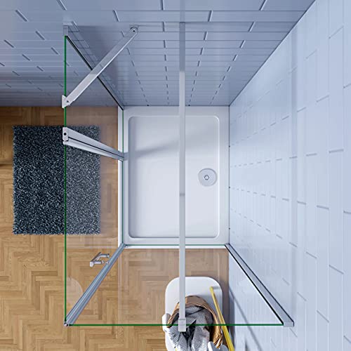Box Doccia Angolare Porta Battente con Parete Fissa 100x76x195cm in Vetro Temperato 6 mm Anticalcare con 2 Barre Stabilizzatrici Telaio Cromo Lucido
