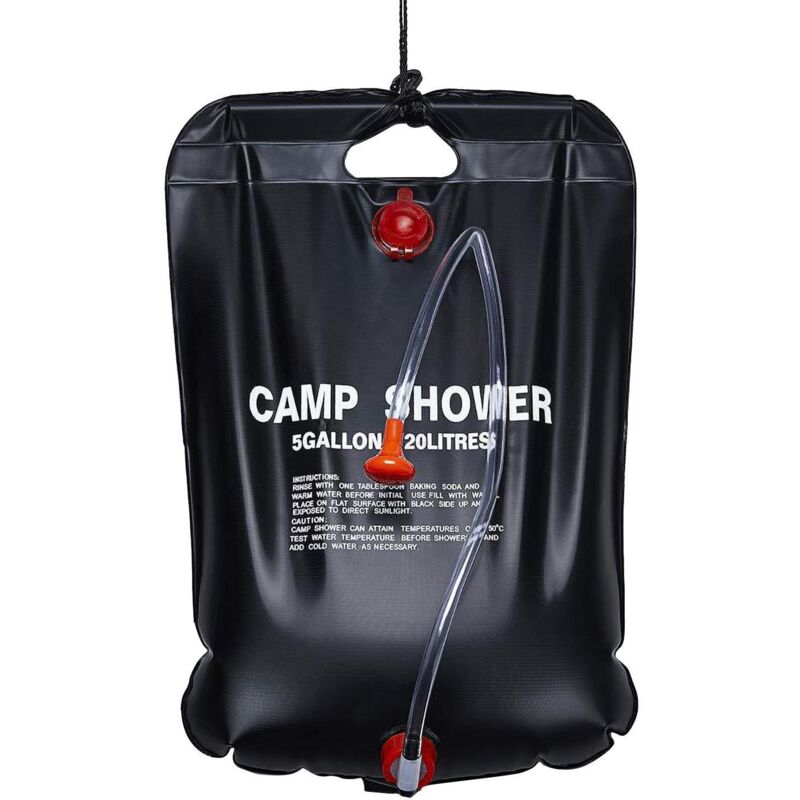 Doccia da campeggio che contiene 20 litri di acqua. Dotato di una maniglia a cui puoi appenderlo. - Maniglia - 20 litri Specifiche: Colore nero Materiale: plastica Dimensioni, confezione: ca. 32 x 14 x 5 cm La confezione contiene: 1x doccia da campeggio