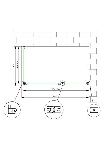 Box Doccia a 2 Lati Con Apertura Battente e Fisso in Linea con Parete Laterale Fissa Reversibile H.190 Vetro 6 mm (FISSO 64-67 + PORTA 117.5-120.5)