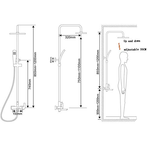 Pacchetto completo - rubinetto della doccia taculato + testa d'urto della pioggia + doccia a mano + treno doccia + tubo flessibile da 1,5 m + accessori di montaggio + manuale