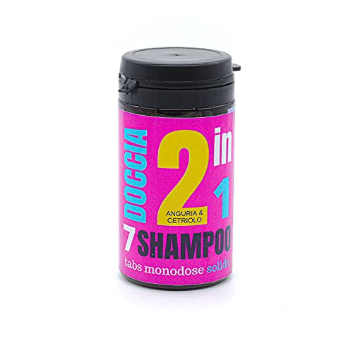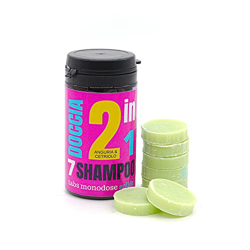Doccia Shampoo Solido Artigianale e Naturale in Compressa 2 in 1 - Ideale per Campeggio e Sportivi - Confezione da 7 Compresse, Anguria e Cetriolo
