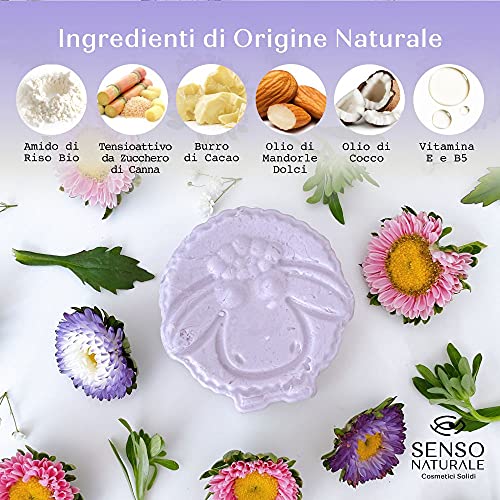 Doccia Shampoo Solido Bimbi Fiorelloso - LILLY - con Olio di Cocco, Olio di Mandorle, Amido di Riso BIO e Vitamina E - idrata la pelle e districa i capelli - equivale a 650 ml