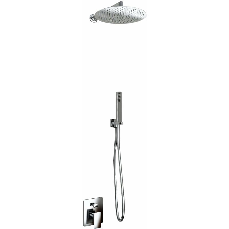 Kit Doccia a Muro Kit Doccia Soffione Doccino e Miscelatore in Acciaio Inox Ø25 cm da Parete Round Kit Doccia 2 Vie Soffione Acciaio Inox Slim 2 mm + Braccio Doccia + Presa Acqua + Flessibile + Doccino Soffione diam.25 cm con Braccio da Parete Kit completo per doccia con Soffione Ultra Slim in acciaio inox inossidabile lucido + braccio in ottone cromato, miscelatore doccia da incasso a 2 Vie, presa acqua a muro, flessibile e doccino in ABS cromato. La soluzione ideale con il minimo ingombro per una doccia completa. Soluzione moderna e minimale, dal design sinuoso. Prezzo imbattibile. Kit doccia composto da: soffione doccia in acciaio inox con braccio in ottone cromato, ugelli in silicone anticalcare, miscelatore doccia da incasso a 2 Vie incluso, corpo in ottone cromato + maniglia in ottone cromato squadrata, doccino in ABS cromato con presa acqua a muro e flessibile 150 cm in PVC. 2 funzioni di uscita acqua, pioggia o doccino singolo. Il kit acquistato completo non necessita di