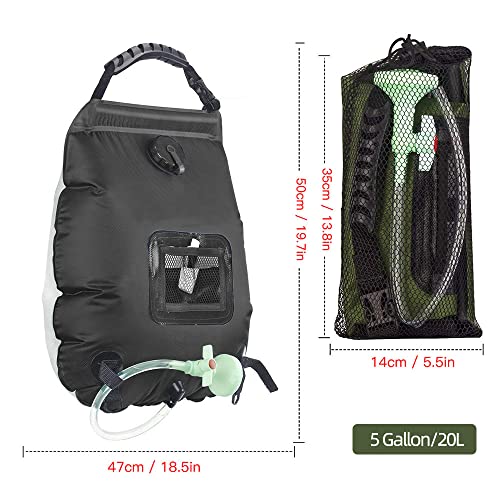 20L Doccia Solare da Campeggio- Borsa da Bagno Solare Campeggio,Borsa per Doccia Solare,Doccia Sacca Campeggio Portatile con Tubo Rimovibile e Soffione per Escursioni Campeggio Escursionismo Trekking